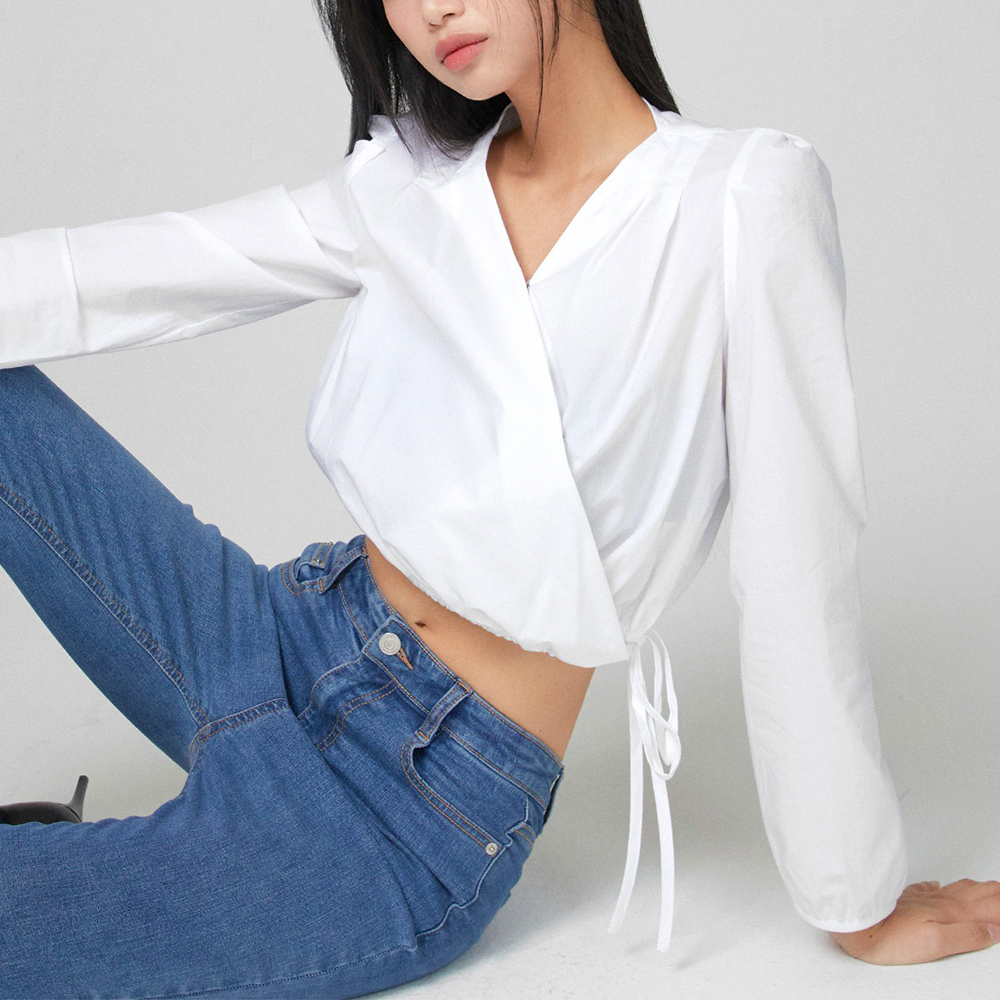 [미쏘] 랩 크롭 블라우스 (MIWBLD911G-T)