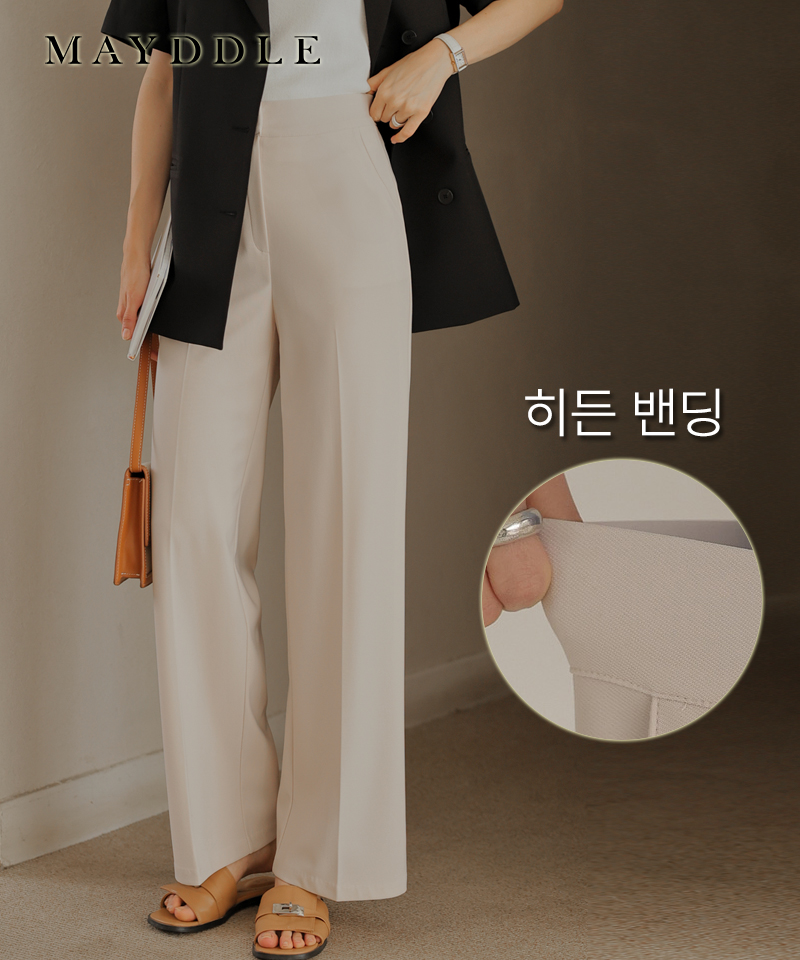 [영상핏][빠른배송]모찌쫀득밴딩 라이트 와이드슬랙스 / 블랙 크림 출근바지 봄 여름슬렉스 기본슬랙스 직장인 하객팬츠 스판슬랙스 와이드핏바지 차르르슬랙스 시원한바지 신축성바지