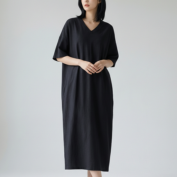오버핏 브이넥 반팔 맥시 원피스 RSOP3097