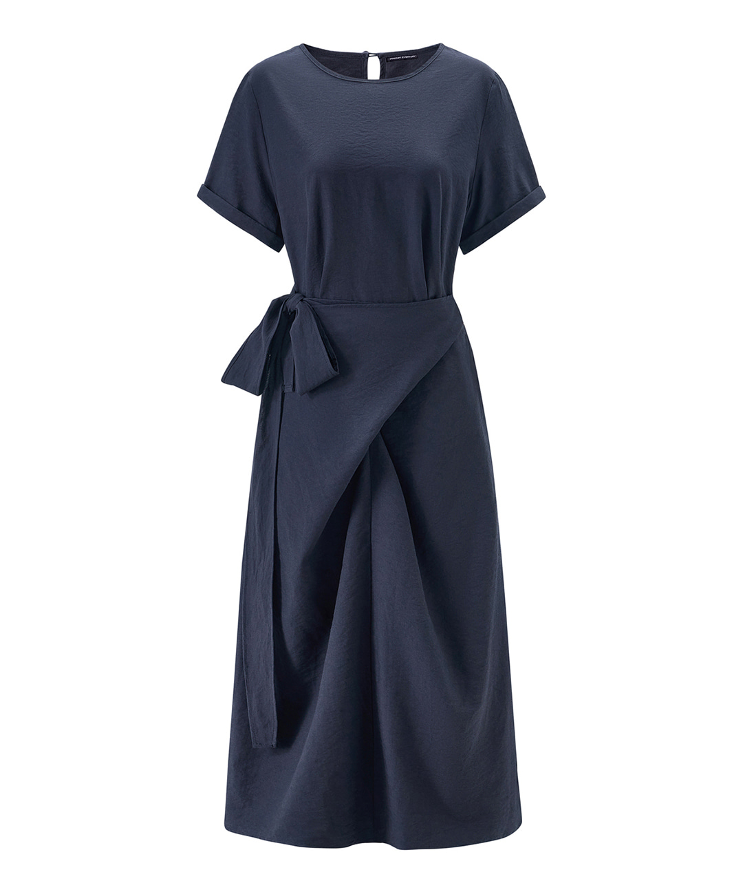 [미니멈 에브리데이]랩 셔링 리본 롱 반팔 원피스 (EC2OW019D)
