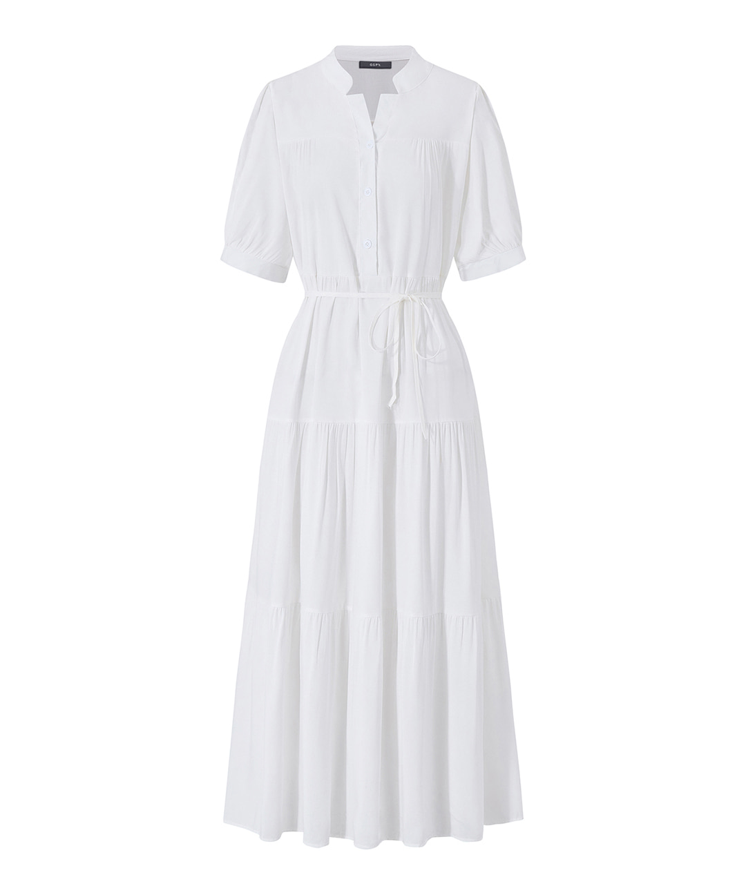 러블리 베이직 허리 스트랩 반팔 롱 원피스 (GQBOW005D)