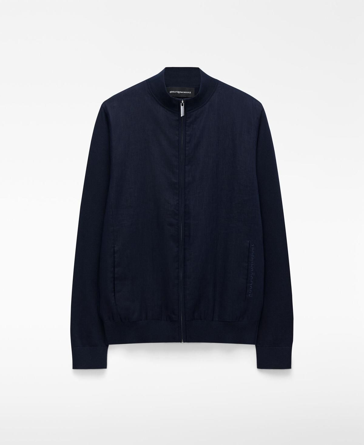아돌포도밍게즈 유럽산 리넨 코튼 니트 콤비 집업 재킷 152061622161 DARK BLUE