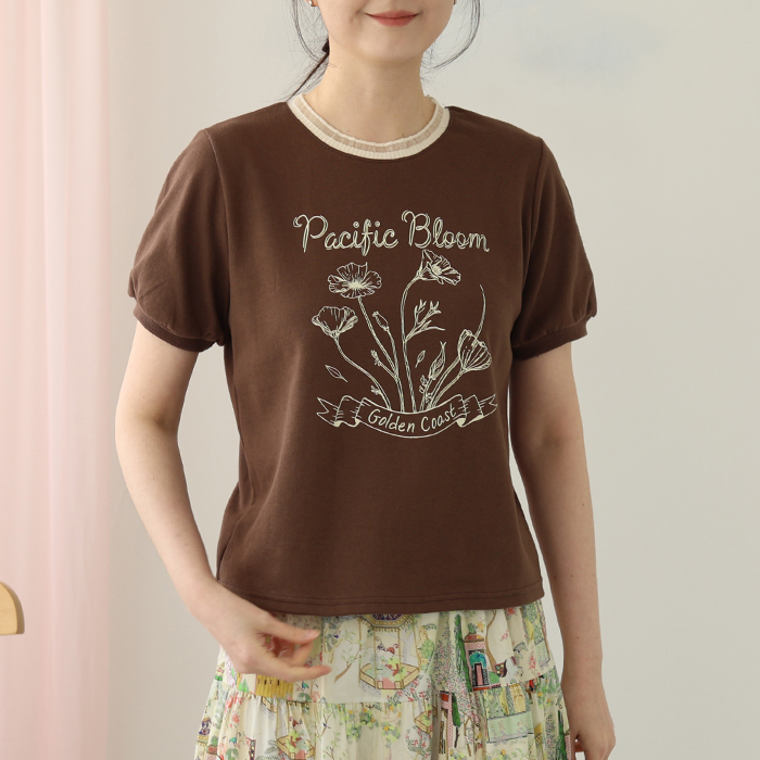 [웬디즈갤러리]플라워 블룸 프릴넥 티셔츠 /페미닌 데일리 편한 면 여름 국내산 VTS115