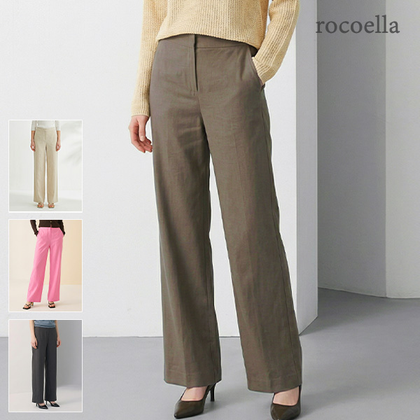 [로코엘라] 줄리 린넨 블렌드 여성 와이드 밴딩 팬츠