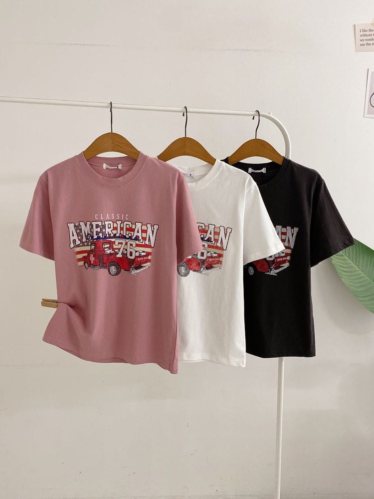 뉴모디 배색 프린팅 반팔 라운드 티셔츠(3color)