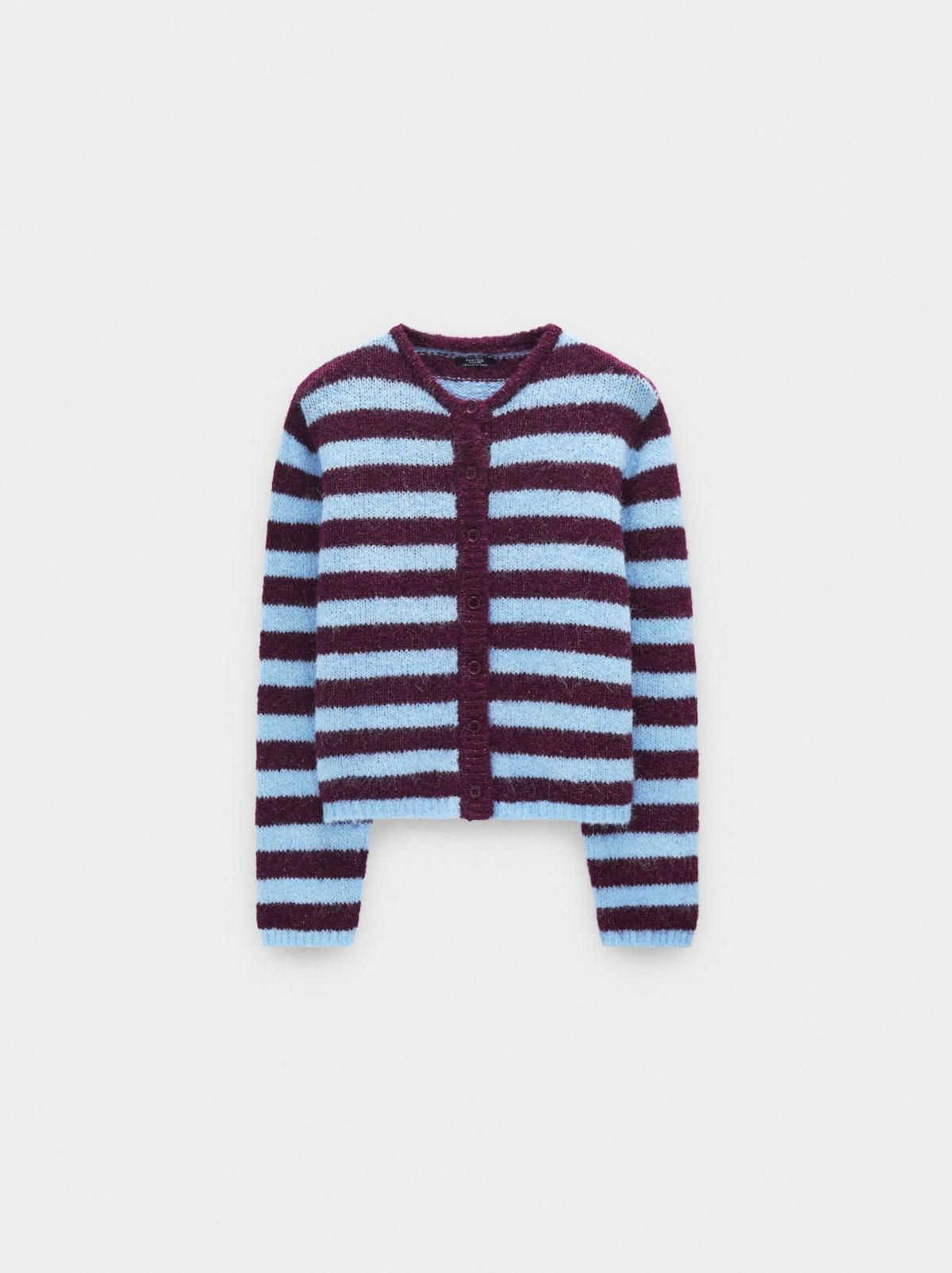 팔포이즈 메쉬 스트라이프 니트 가디건 243257 BORDEAUX