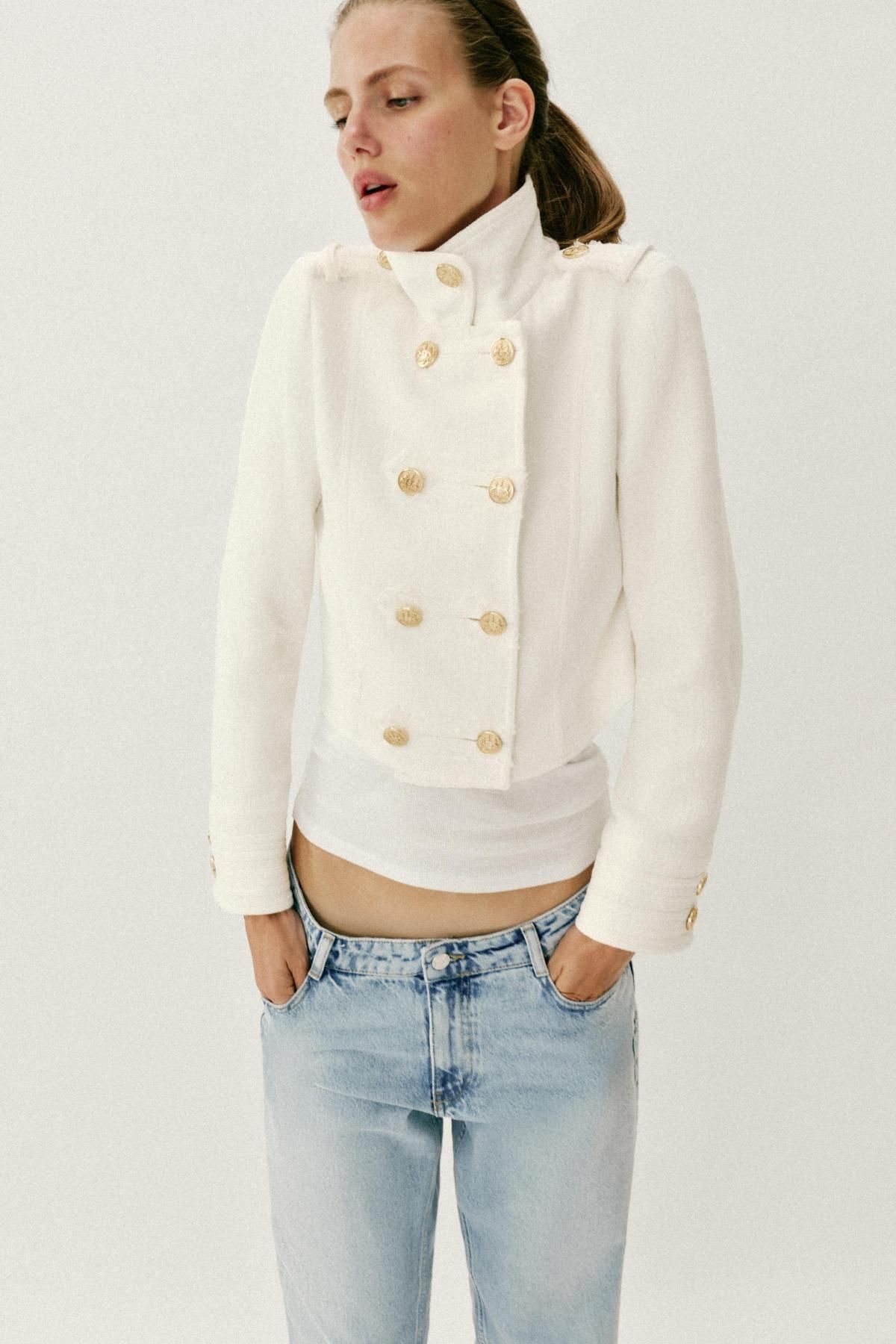 자라 크롭 하이넥 골드 버튼 자켓 2749/115/712 ECRU