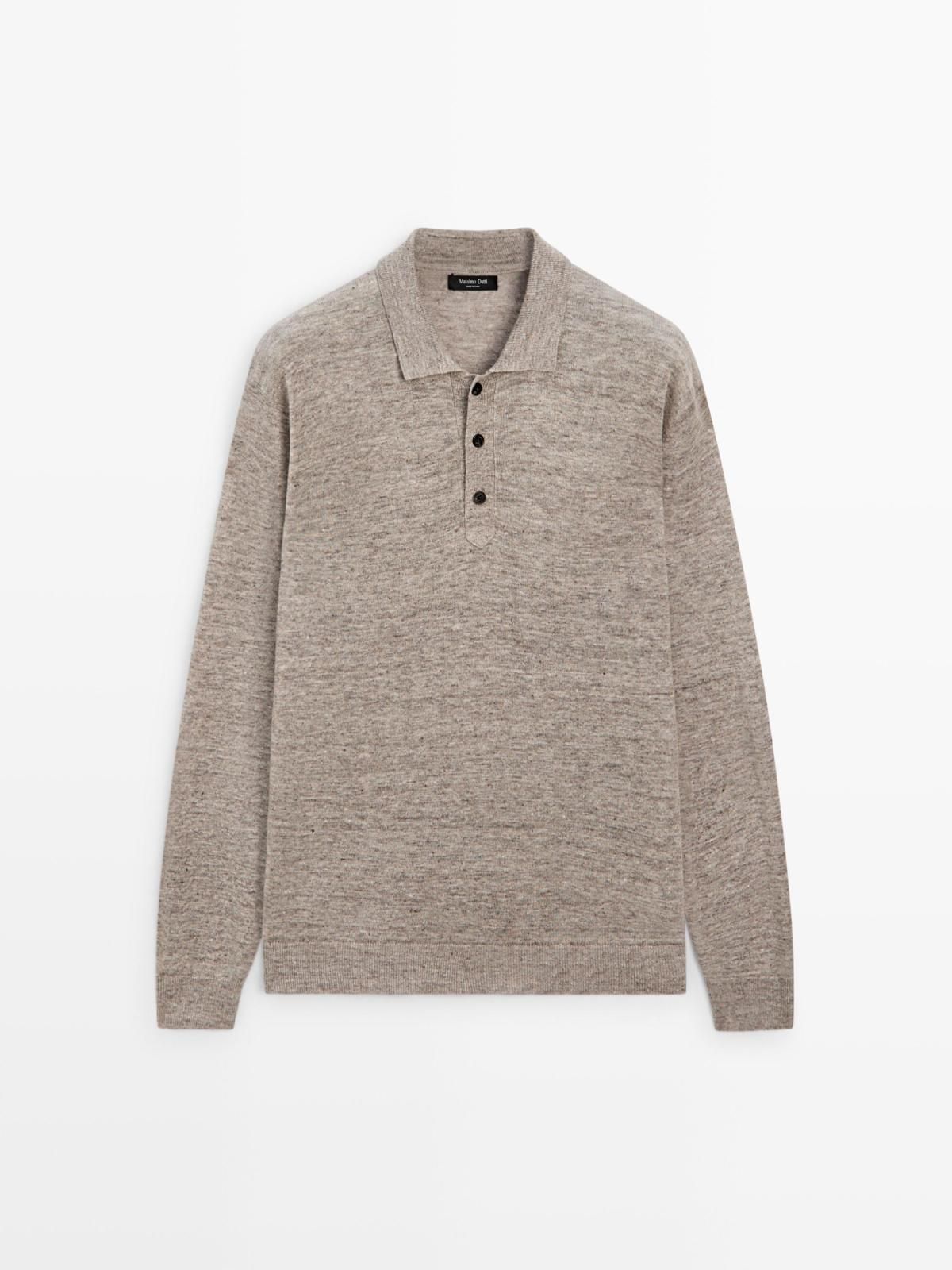 마시모두띠 린넨 멜란지 폴로 니트 스웨터 1256/202 BEIGE MARL