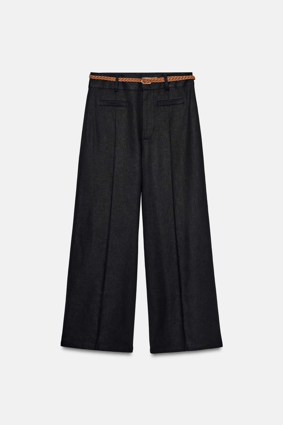 자라 리넨 혼방 브레이드 벨트 큐롯 팬츠 2589/722/800 BLACK