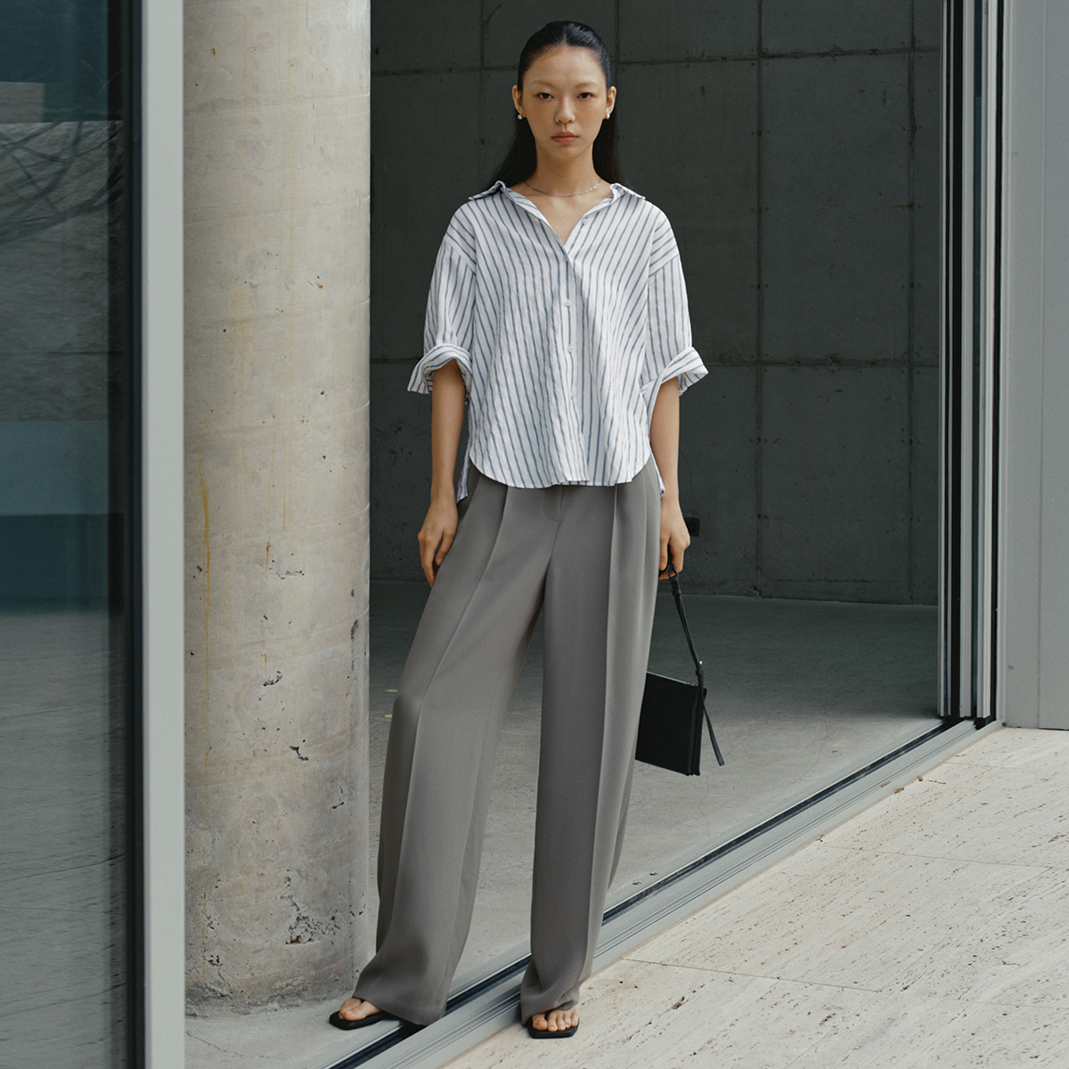 [골드라벨] 테이퍼드 핀턱 와이드 팬츠_SWWSLQ23010