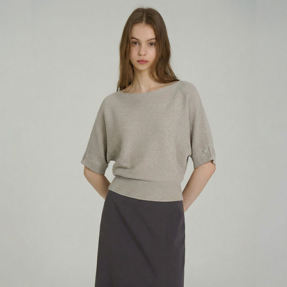 [ab.plus/신상] 보트넥 가오리핏 소매단추 반팔 니트 (LSA2MW34A)