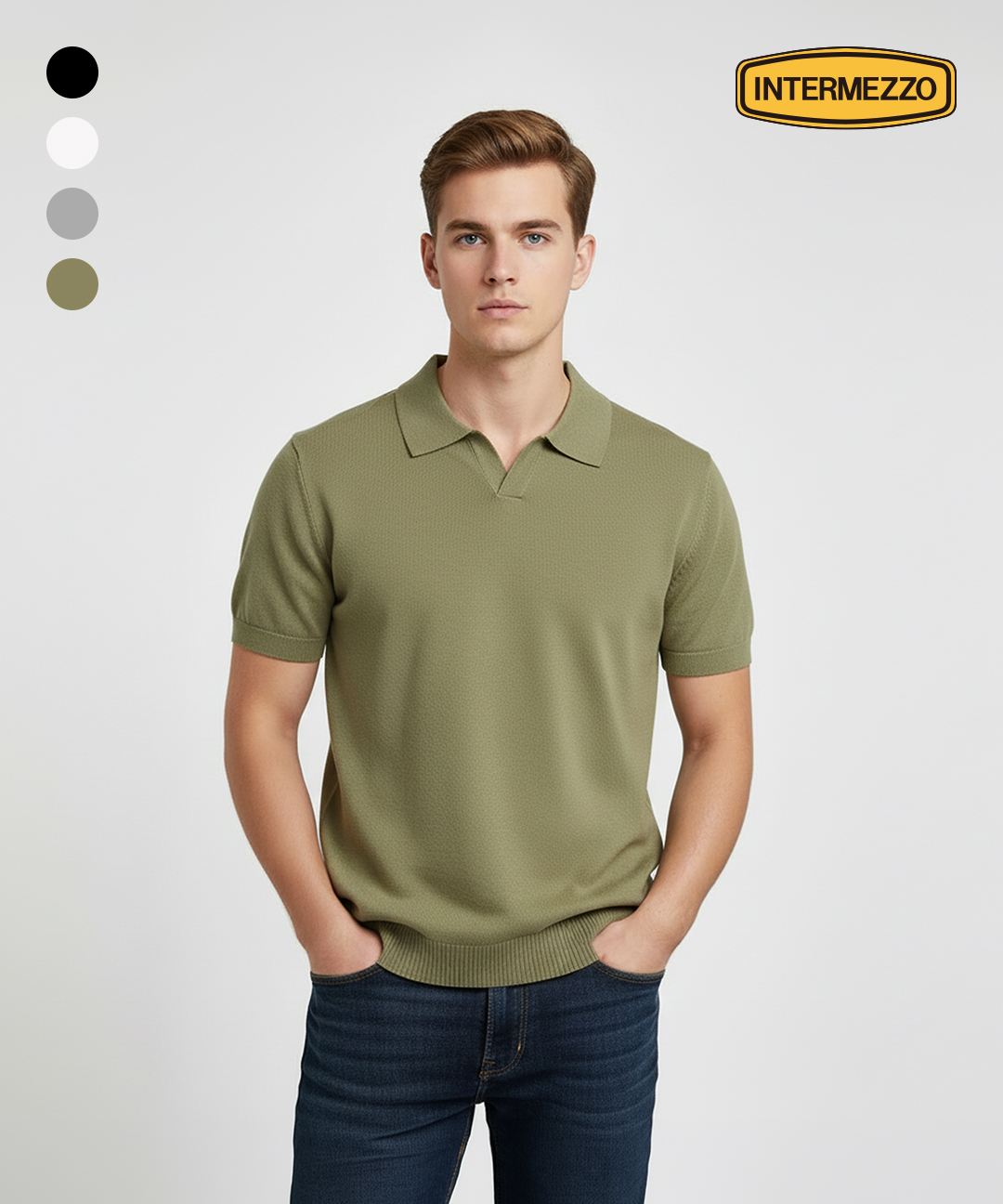 린넨 블랜드 반오픈 카라넥 반소매 니트 4종택1 IMGSKN527G