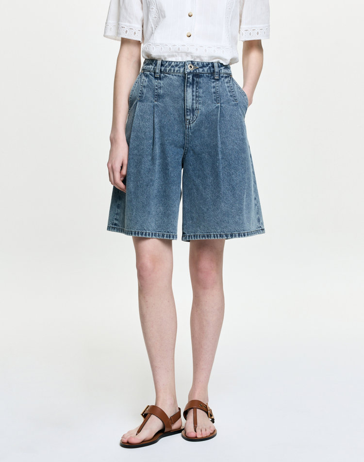 투턱 데님 버뮤다 팬츠 다크블루 HSPA6B482B3