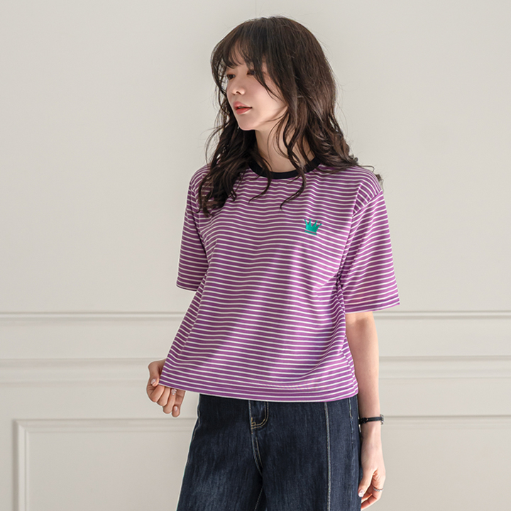 [키첼] [26"신상 단독특가] 오플레 스트라이프 자수 반팔 티셔츠