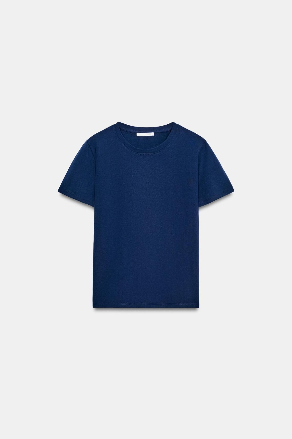 자라 코튼 라운드넥 러스틱 반팔 티셔츠 4424/306/401 NAVY BLUE