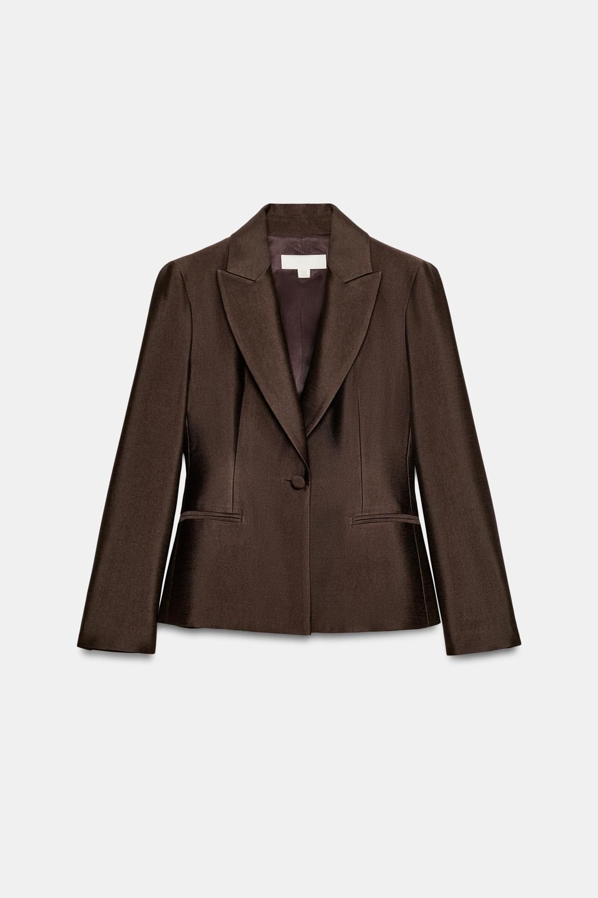 자라 새틴 슬림핏 테일러드 블레이저 2526/612/700 BROWN