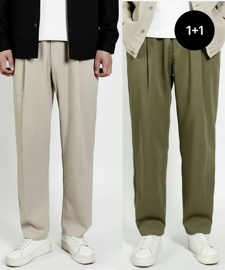 1+1 남자 와이드 슬랙스 밴딩 핀턱 빅사이즈 데일리 카키 베이지 블랙_ID275ASET