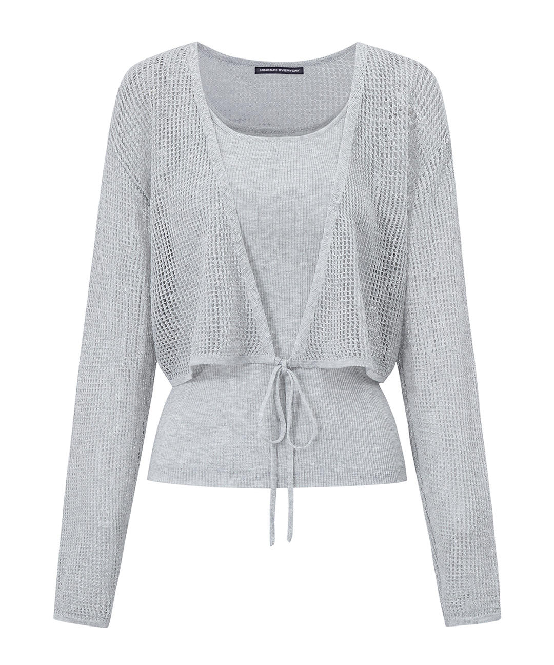 [미니멈 에브리데이]민소매 니트 스트링 크롭 가디건 세트 (EC2CK020D)