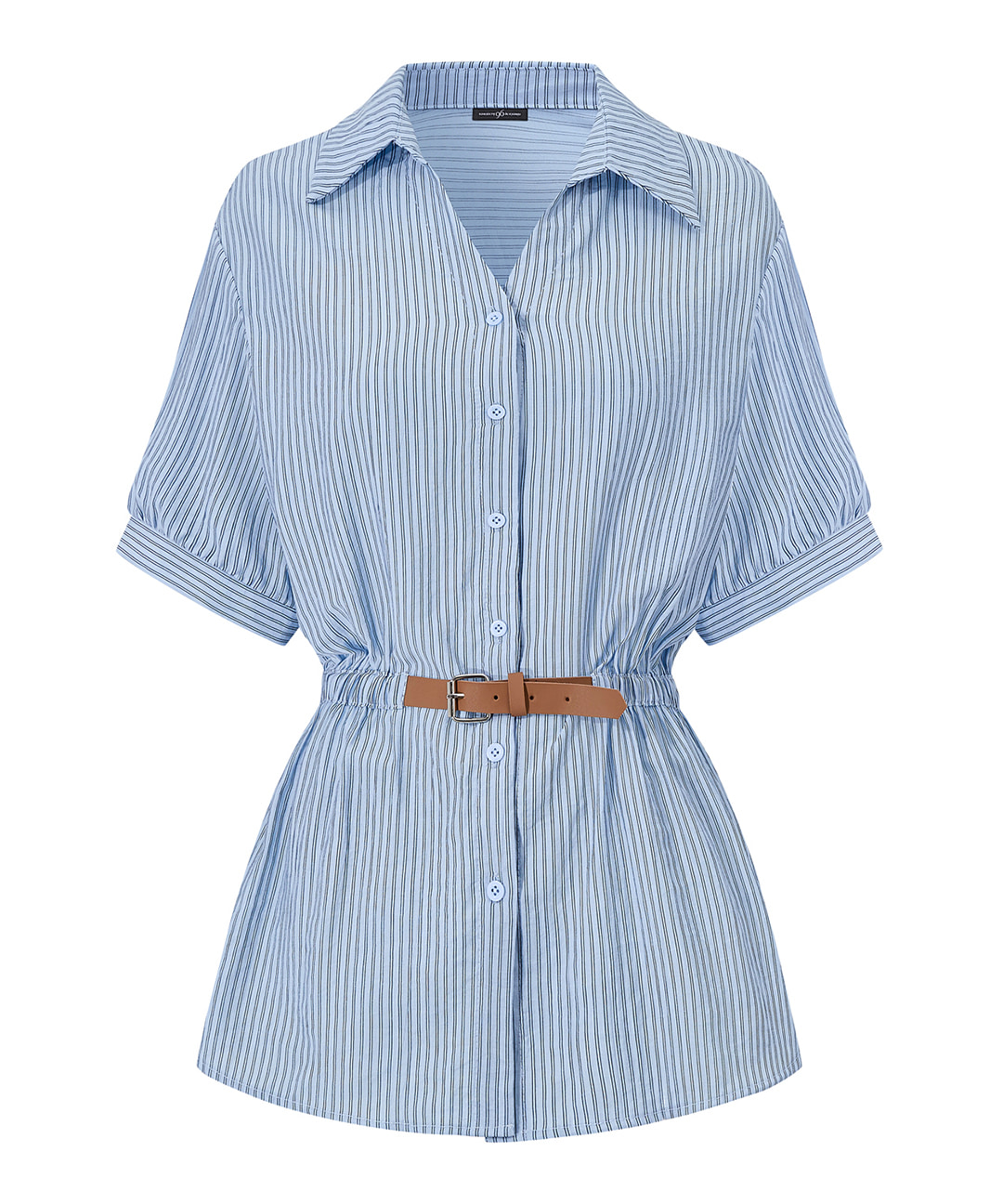 [신상 단독특가] 스트라이프 벨티드 반팔 셔츠 (NQ2BA016L0)