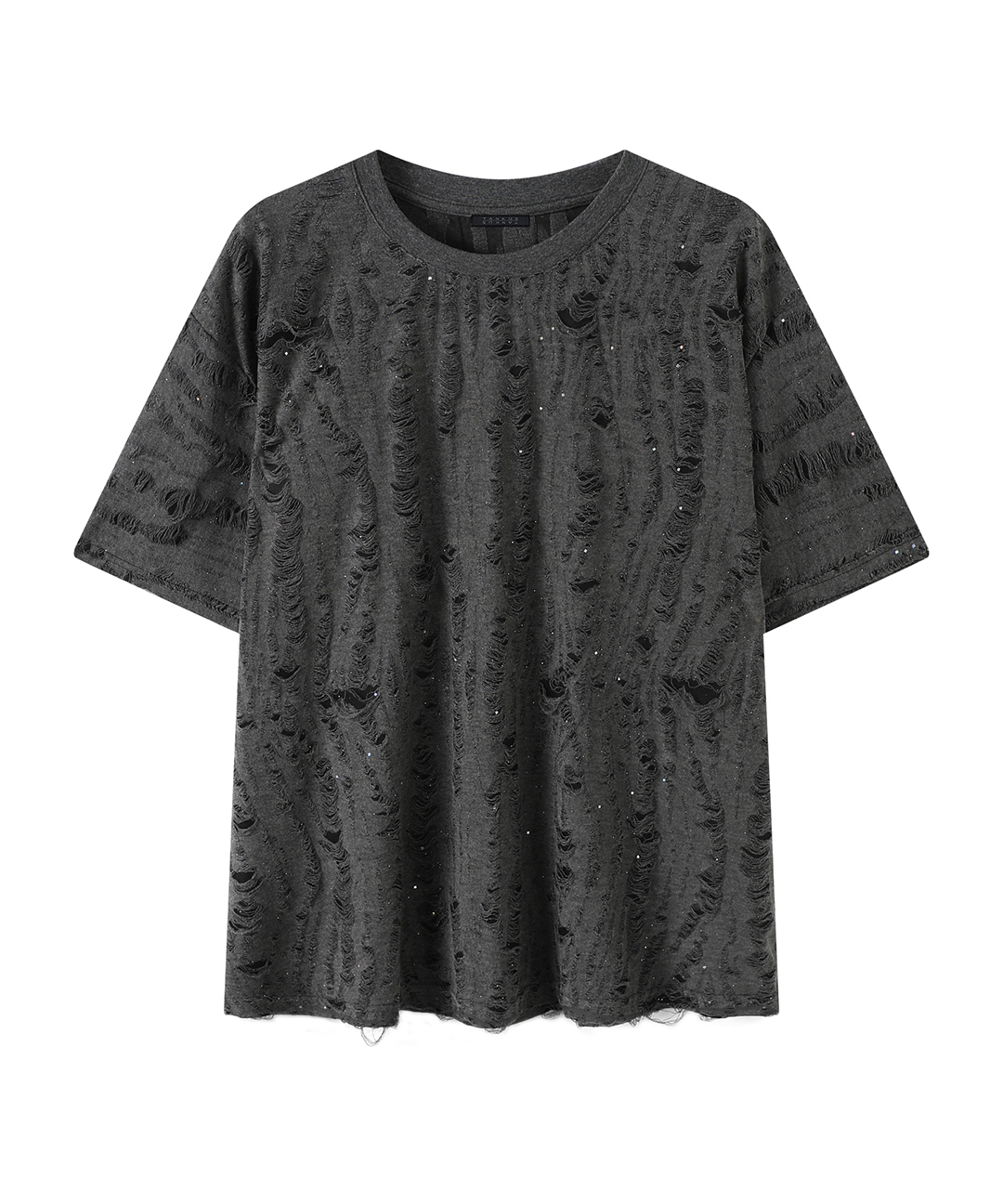 [신상 단독특가] 데미지 컷팅 스팽글 반팔 티셔츠 (TY2TS033L0)