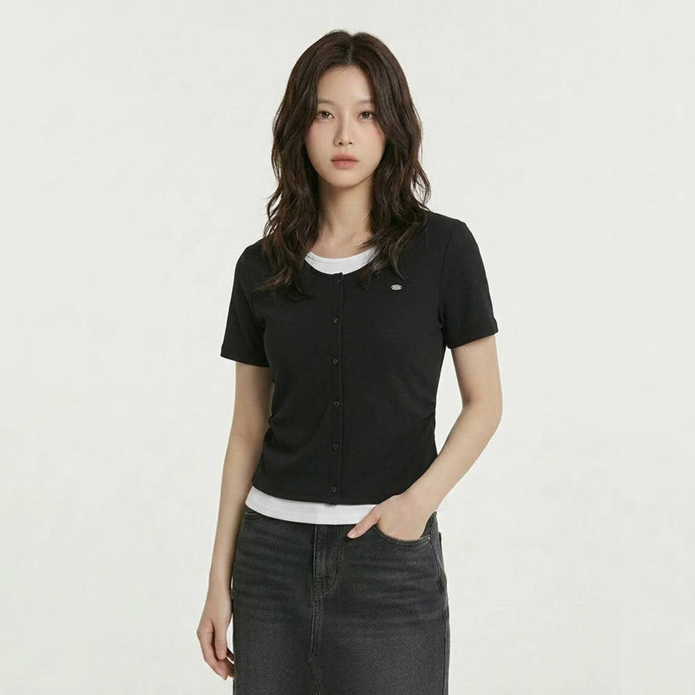 [온라인전용]여성 슬림핏 웨일 가디건 레이어드 반팔 티셔츠_100(10570-131-498-69)
