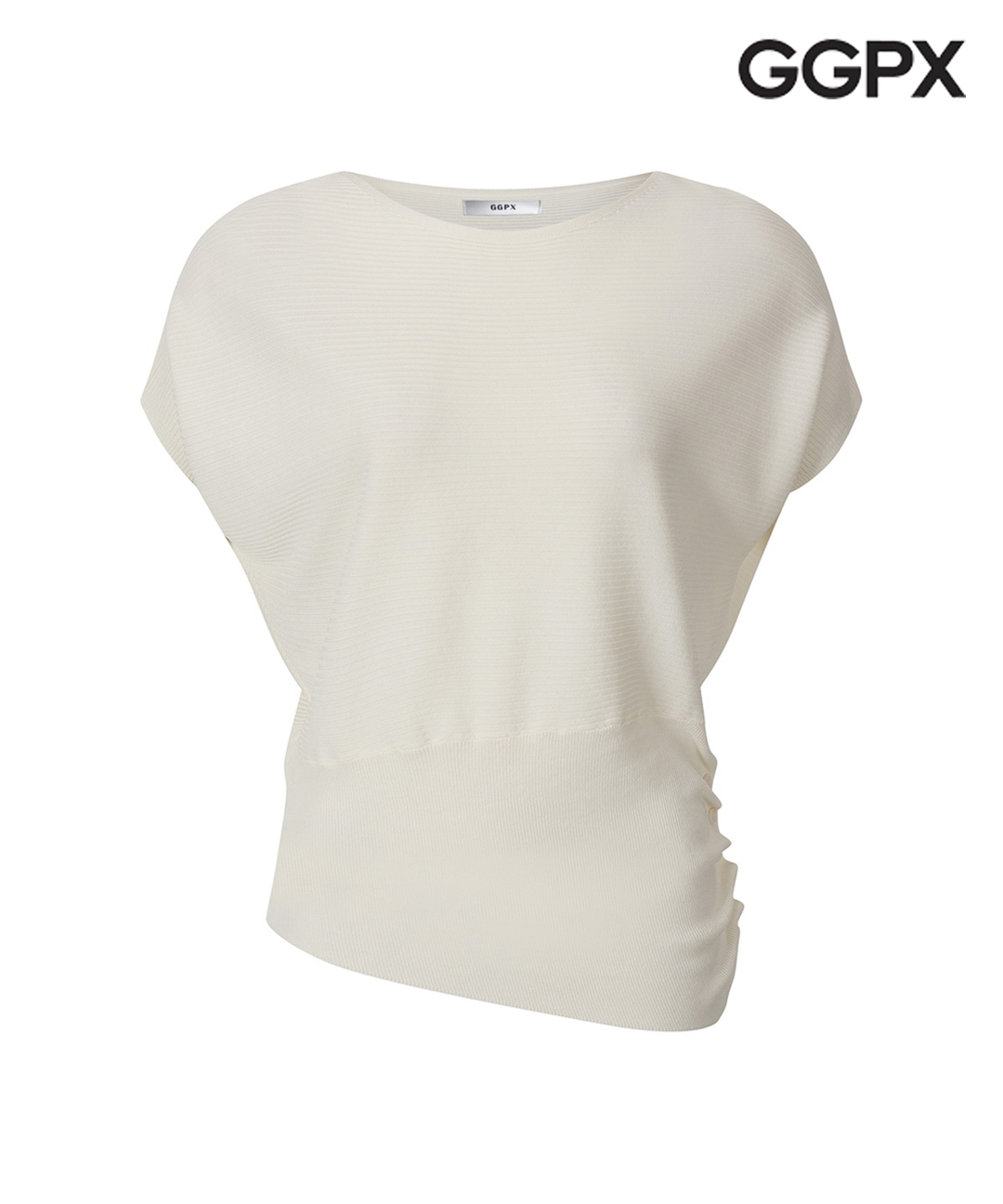 [GGPX] 돌먼 슬리브리스 사선 셔링 골지 니트 (GQ4KP021F)