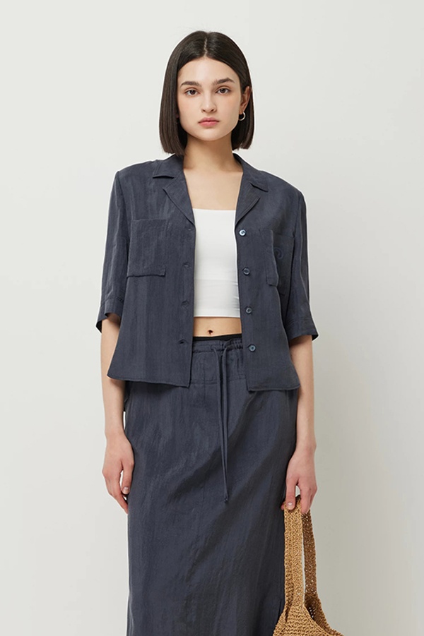 포커스 포켓 자수 반팔 블라우스_SAWSC5631