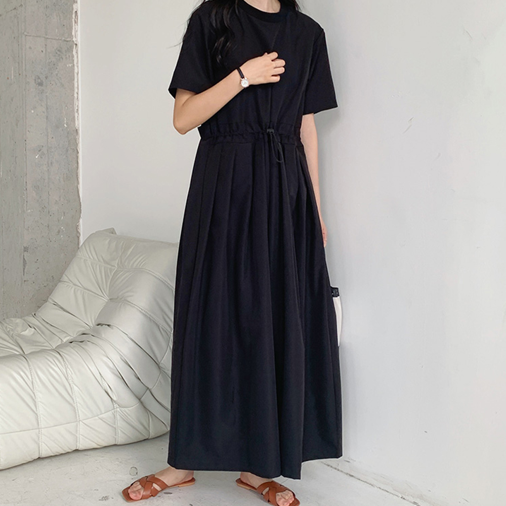 솔리드 와이드 허리 스트링 반팔 점프수트 C24BJS123