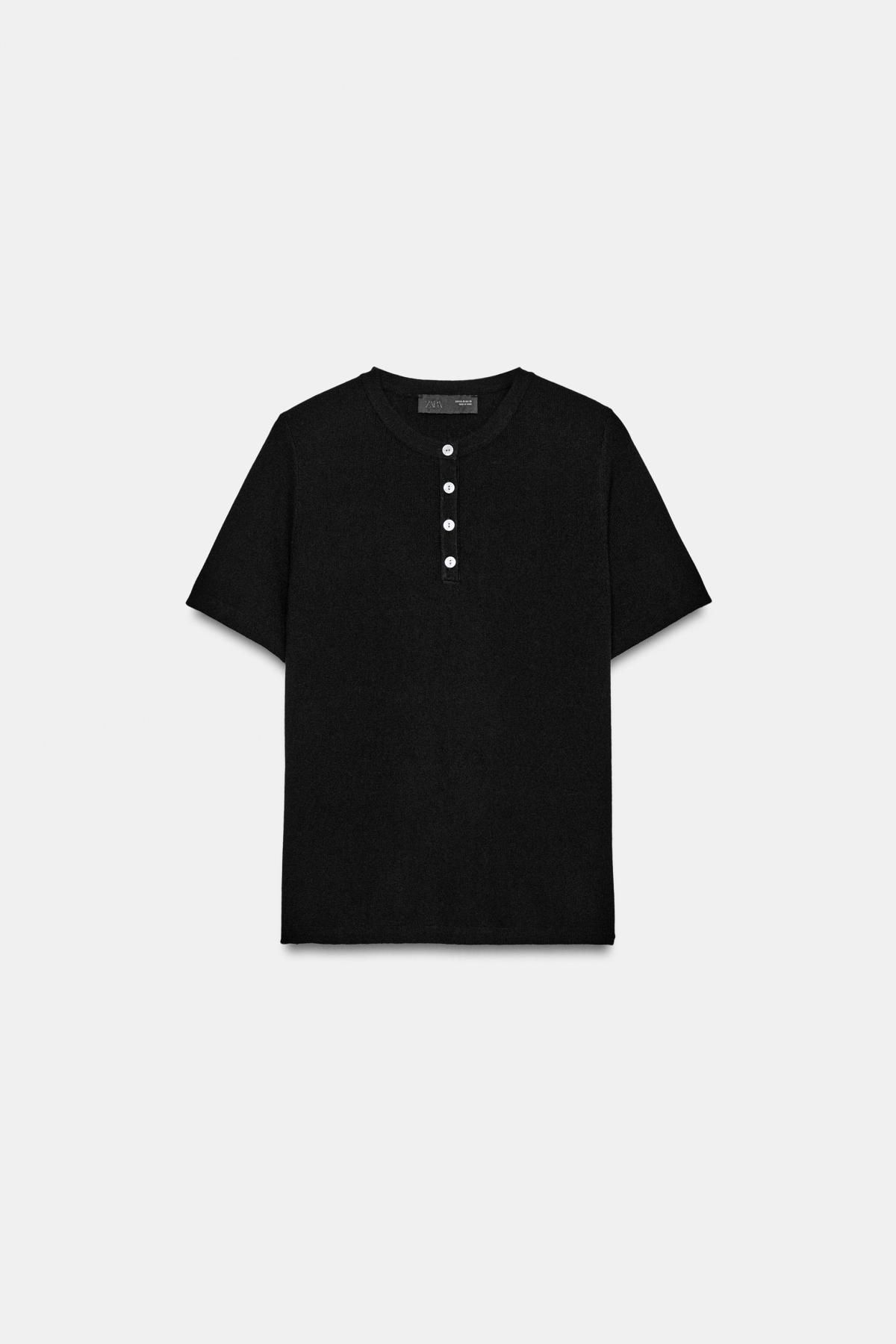 자라 버튼업 라운드넥 반팔 니트 탑 5755/056/800 BLACK